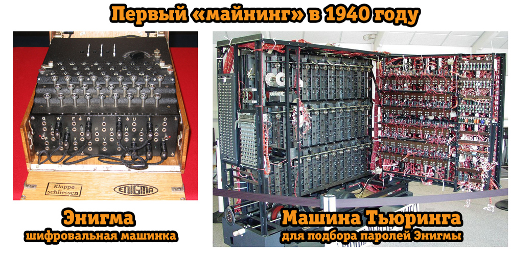 Криптография существует достаточно давно. Так еще во время Второй мировой войны, Германия шифровала свои сообщения при помощи машины «Энигма». Зашифровка сообщений была моментальной. А получить оригинальный текст, без Энигмы, было возможно только путем «перебора», который занимал очень много времени. Но тут на помощь человеку пришла машина разработанный в Англии Аланом Тьюрингом, которая занималась автоматическим «подбором» кода для расшифровки сообщений.